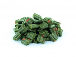 Timothee (40%), Lijnzaadhullen, Lijnzaad (13%), Zonnebloemzaadschroot, Bietenpulp, Lijnzaadschilfers, Wortelvlokken (3%), Kamille (0,1%)