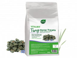 Vitalbix Tiny Treats zijn kleine beloningsbrokjes boordevol gezonde ingrediënten zoals timothee, lijnzaad, bietenpulp, wortel en kamille. Ideaal als beloning bij grondwerk, vrijheidsdressuur en clickertraining, of gewoon om je paard te verwennen… Bevat geen melasse, granen, soja en lucerne. Laag in zetmeel & suiker.